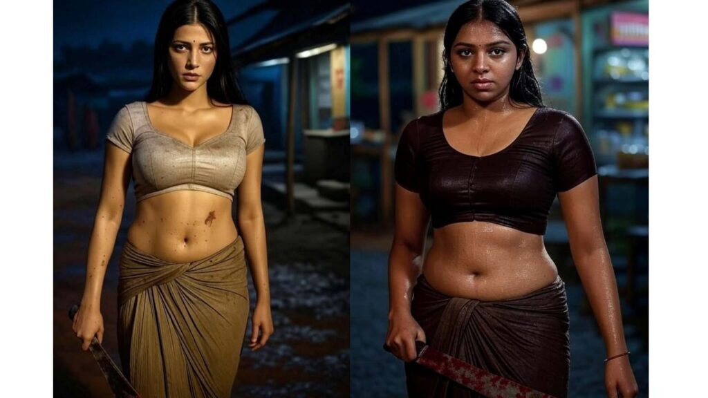 AI generated photos of hot tamil auntys in blouse and skirt..